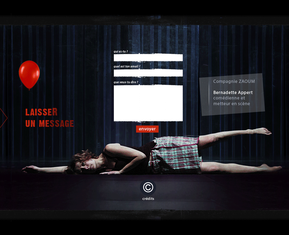 Création graphique du site de la comédienne Bernadette A.Site en « one page », parallaxe et scrolling horizontale. Site Internet