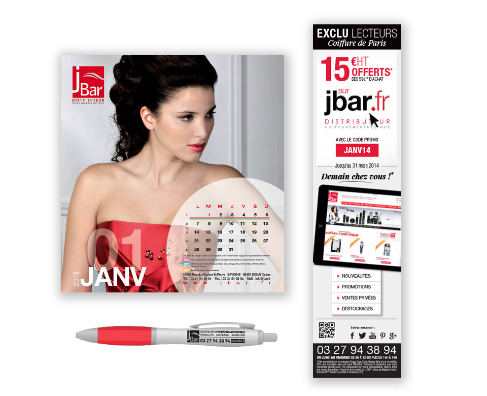 JBAR est un distributeur en Coiffure et Esthétique.Communication B-to-B.Conception graphique du calendrier annuel.Mise en page du magazine promotionnel bimestriel. Site Internet