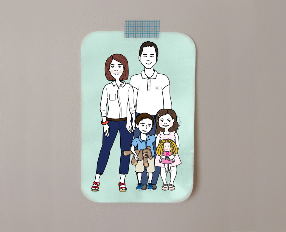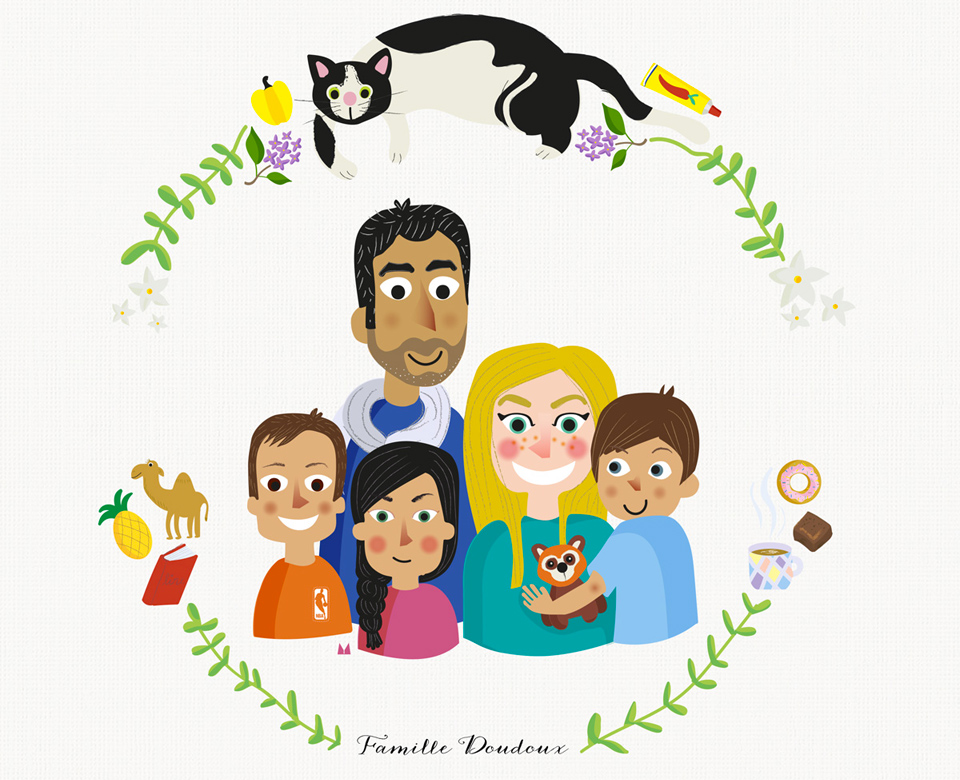 Tranches de vie illustrées, portrait de famille,...Dessins au crayon et tablette graphique.