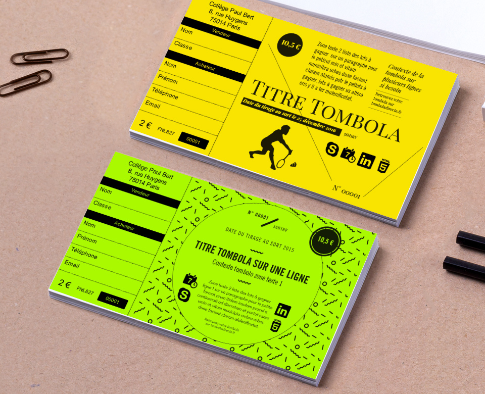 Propositions de nouvelles maquettes de billet de tombola avec pour contraintes techniques la monochromie et l’utilisation du svg.